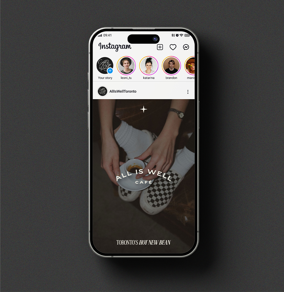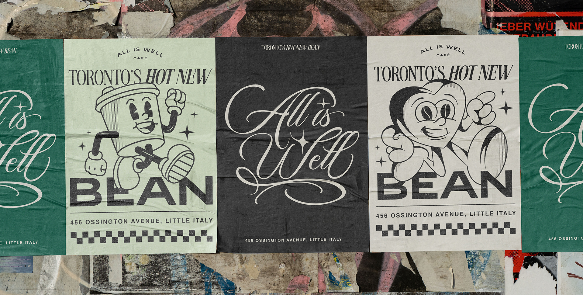 All is Well Cafe, a newly opened coffee shop in Toronto, Canada, was looking for a brand refresh that better aligned with its eclectic, urban energy and interior aesthetic. Evans, the co-owner (and a talented tattoo artist), came to me with an initial vision he hoped I could refine and expand into a cohesive brand system. He brought two contrasting elements to the table: a hand-drawn script wordmark sketch and a vintage-inspired heart-shaped mascot illustration. My role was to thoughtfully refine and marry these very different aesthetic styles while building a flexible identity that could grow with the brand over time. The final brand system includes multiple logo variations designed for different applications, a simplified all-caps sans-serif option to balance the busier calligraphic and retro elements, and the foundation for an evolving mascot library that can shift with seasons, campaigns, or future themes. A series of posters, branded merchandise mockups, photographic art direction, social media art direction, and a brand style guide were also developed to help guide the cafe’s visual storytelling and ensure a cohesive, adaptable brand experience across all touchpoints.